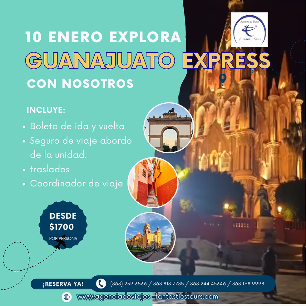 ¿Buscas experiencias únicas dentro de nuestro hermoso país? En Fantastics Tours te ofrecemos los mejores paquetes de viajes nacionales desde Matamoros Tamaulipas México, Ideales para grupos escolares,religiosas,familiares, lunamieleros y turisticos. Contamos con salidas organizadas a destinos increíbles. Nuestros Viajes incluyen Transporte seguro, hospedaje cómodo actividades guiadas, todo a precios accesibles y con atencion personalizada. Viaja con nosotros y vive MÉXICO como nunca antes.